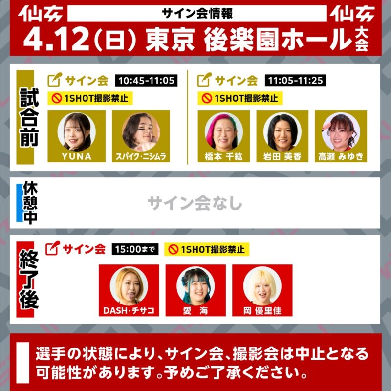 ━━━━━━━━━━━━2026年4月12日(日) 試合開始 11:30(10:30開場)会場: 後楽園ホール ※当日券は10:00より販売します。 ━━━━━━━━━━━━ ━━━━━━━━━━━━サイン会━━━━━━…