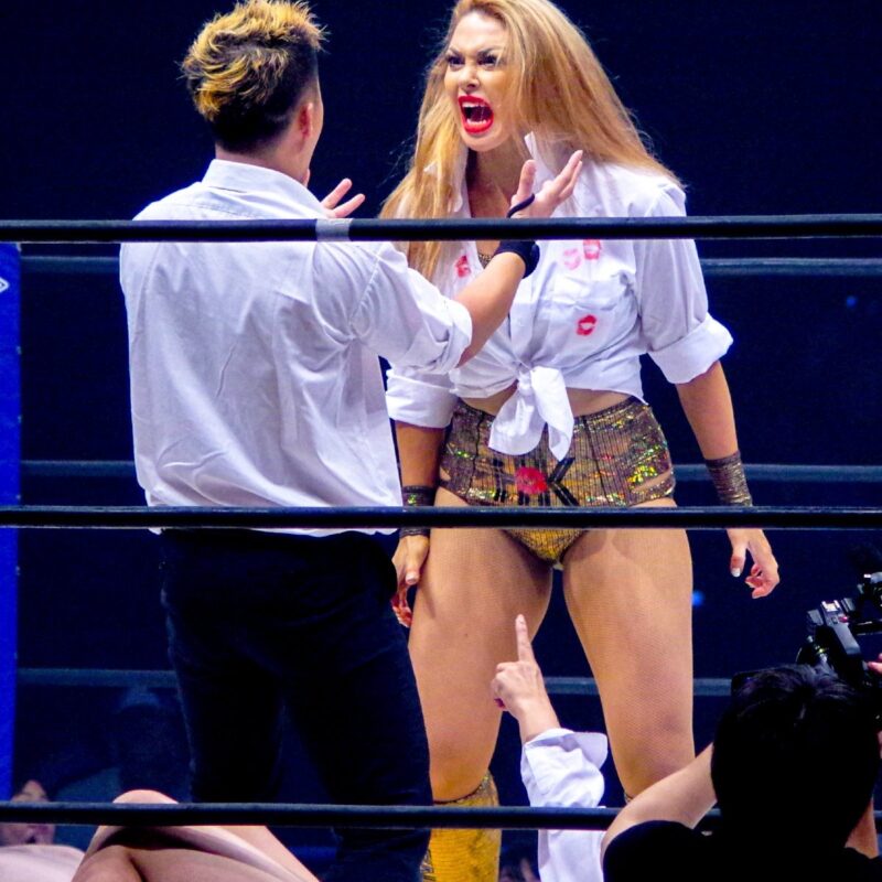4月に双子を産んで4ヶ月で早々と復帰。 妊活前に、「ポンっと産んでポンっと帰って来ますから!」と言って実行した。 旧姓・広田さくらの復活の舞台裏で、、、 広田が入場間際、、 長与さんが広田の子供を抱っこして…