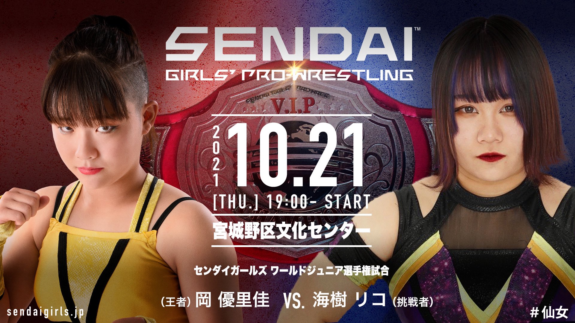 こんばんは! あと9日後は宮城野区文化センター大会!! 全対戦カード発表されております↓ 仙台サンプラザホール大会前 最後の仙台大会になります。 岡優里佳vs海樹リコのジュニアタイトルマッチ。 そして、メインではタッグタ…