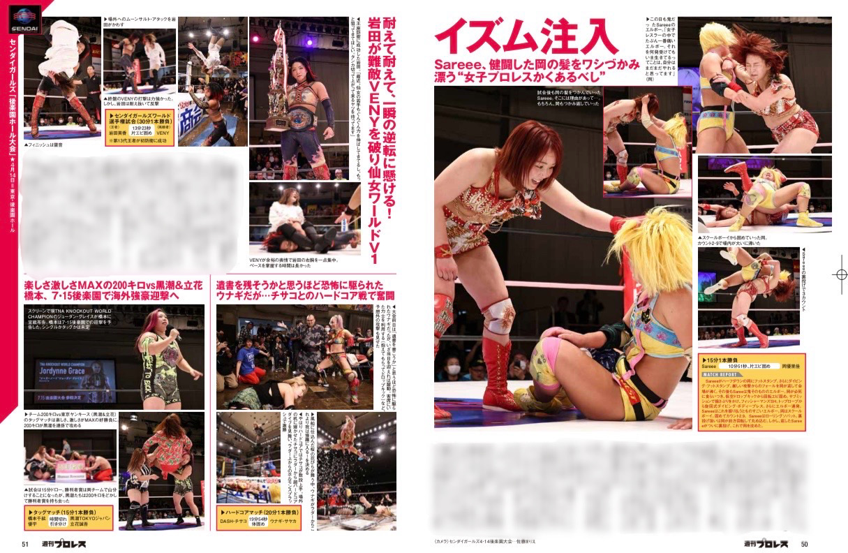 本日発売の週刊プロレスに仙女が載っています!! 去年までは週プロに載るとしても、端の方に小さくしか載った事が無かった。 でもそれは結果を残していなかっ…