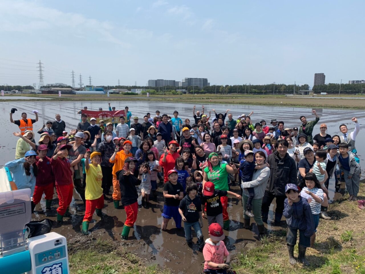 最高の天候のもとでの田植えイベント。