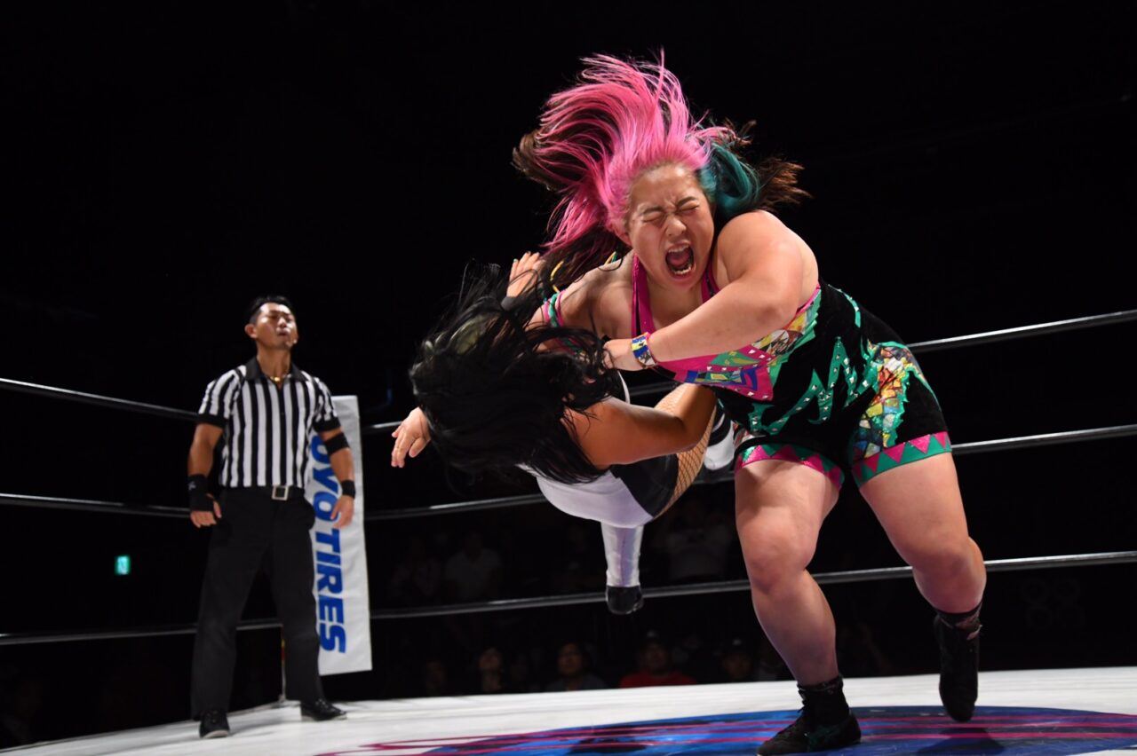 橋本千紘&岩田美香&優宇 vs 里村明衣子&KAORU&神童ミコト