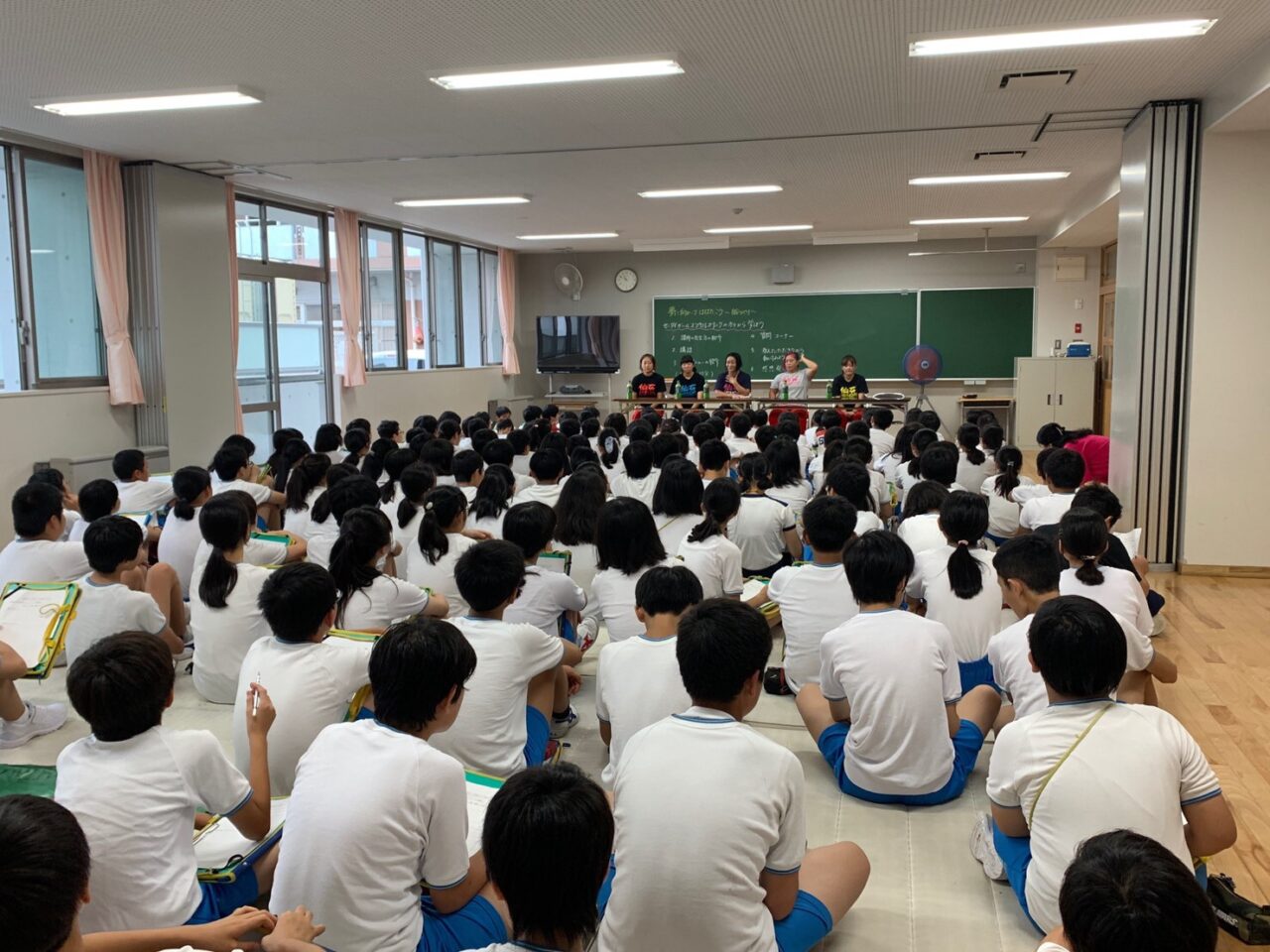 9月9日(月) の10時より、仙台市上杉山通小学校の小学校6年生約140名を対象に仙女選手他、里村明衣子、橋本千紘、愛海が2時間に渡り講演をしました。