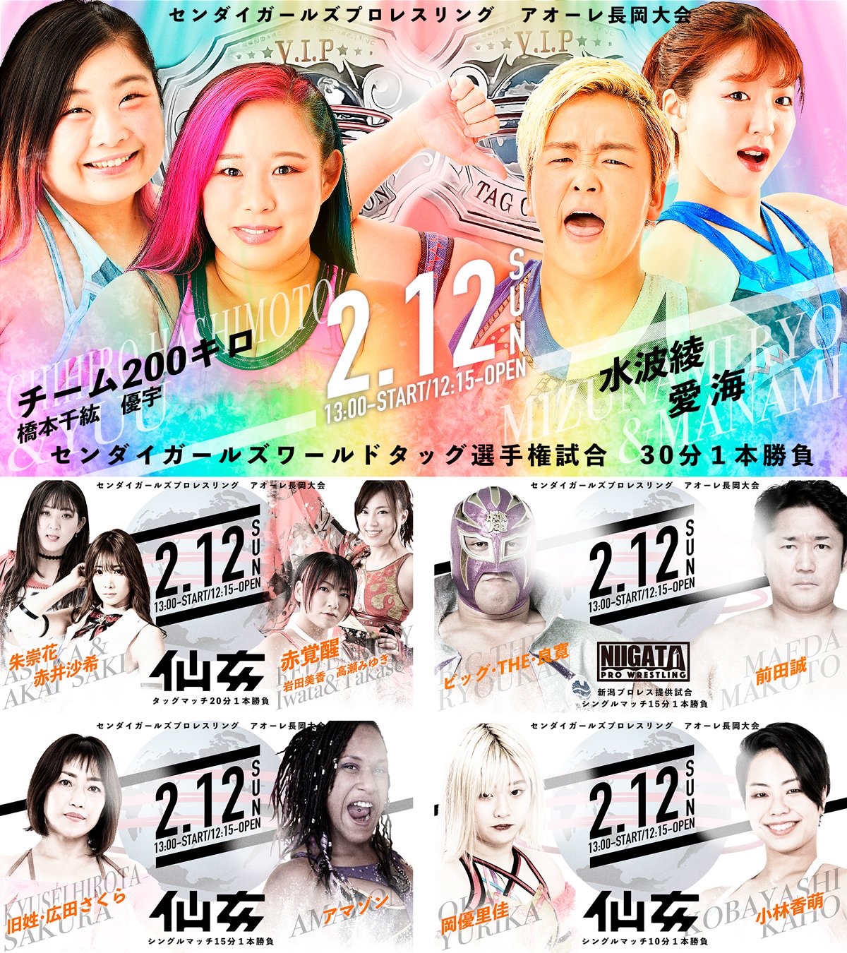 2/12 アオーレ長岡大会カード全て決定しました🔥🔥 今大会も怪我の為、DASH・チサコは欠場致します💦 会場で皆さん一緒に応援しましょうね🔥 そして、2月…