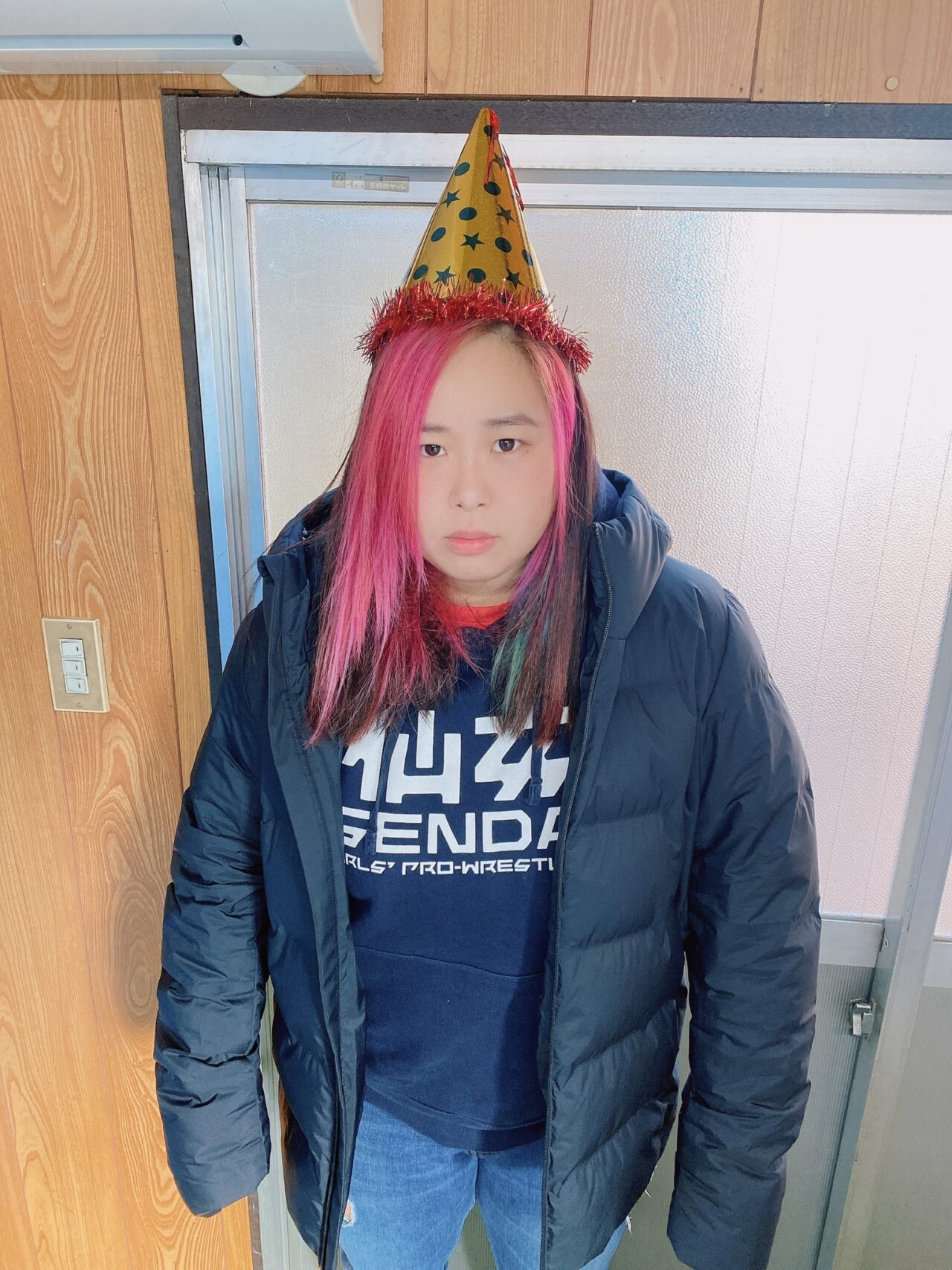 気が付いていても突っ込み入れずらいのでは?1日遅れですが新潟プロレスで金子選手にトナカイのコスプレさせてサンタの格好で入場してきたら受けそうだけど愛海&岡組がリアクションに困りそう。