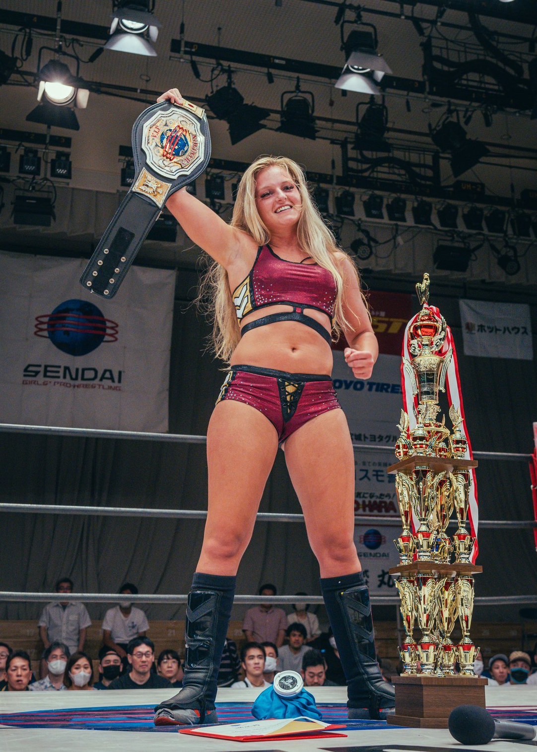 彼女は18歳(6年前)から仙女に参戦し、ジュニアタイトル、タッグタイトル、そして今回シングルタイトル王者に。