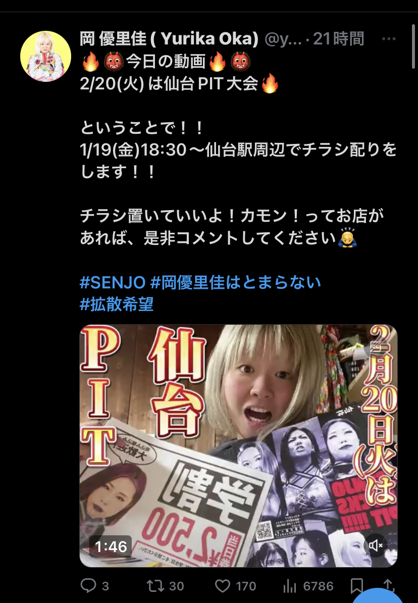 今週の金曜日は、仙台PIT大会のチラシ置きも仙台駅周辺でさせて頂きます⭐️