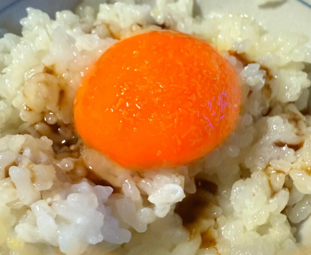 さっそく朝食で卵かけご飯に。