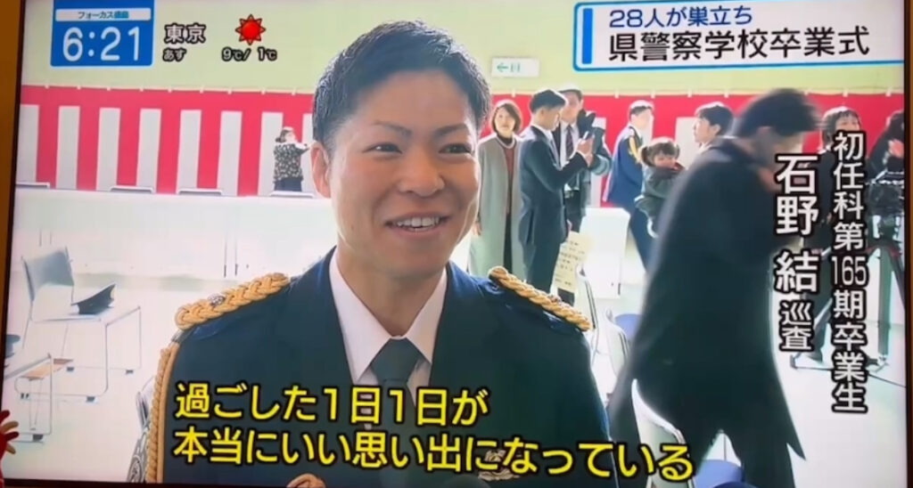 大阪といえば、テレビに映ったからもう公開していいんだろうけど、花月が警察官になったんです。
