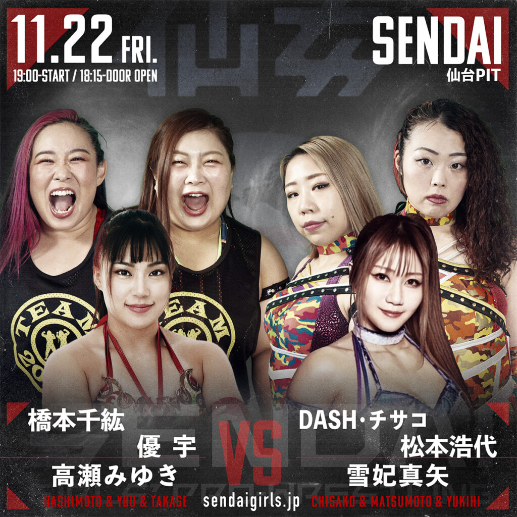 橋本千紘 & 優宇 & 高瀬みゆき vs DASH・チサコ & 松本浩代 & 雪妃真矢