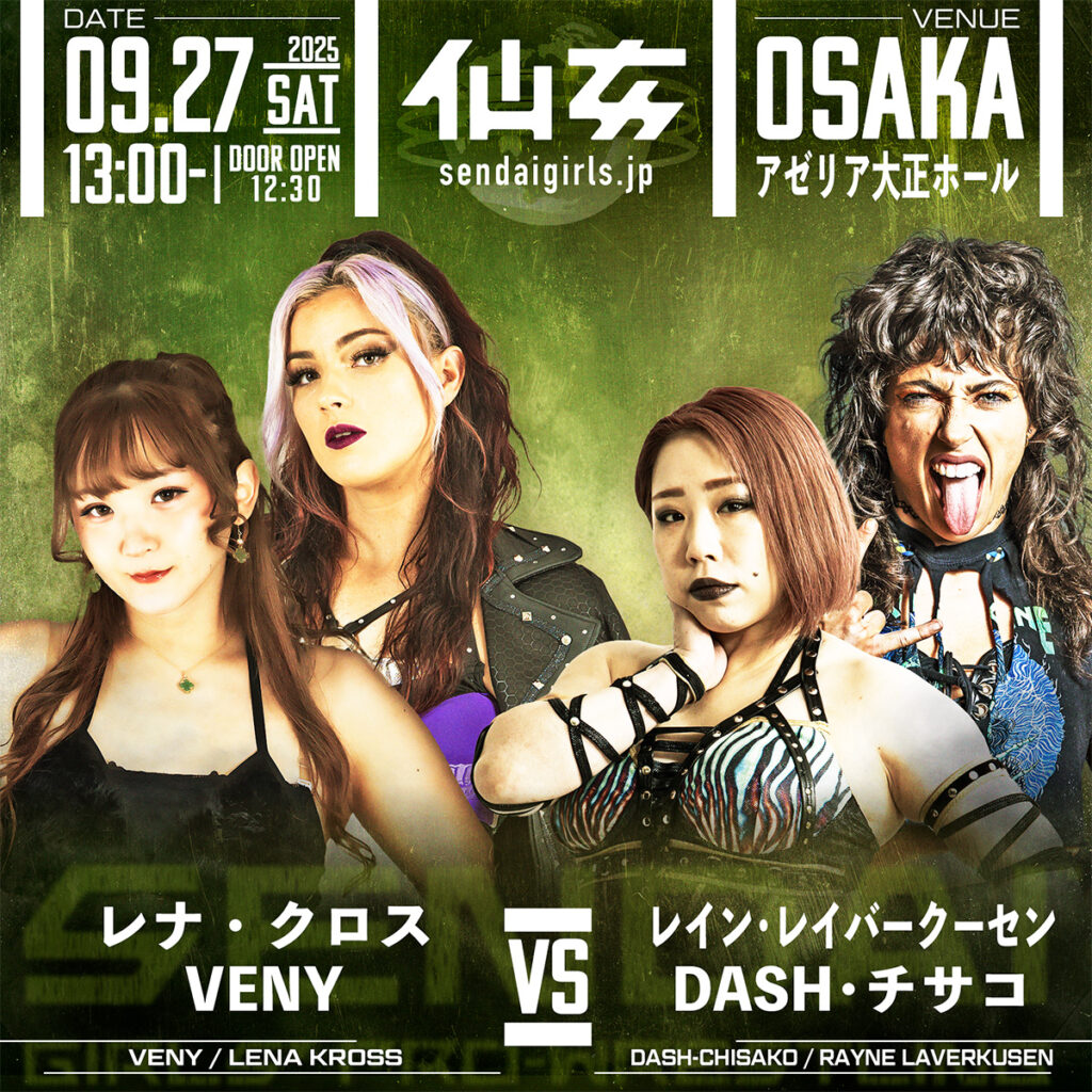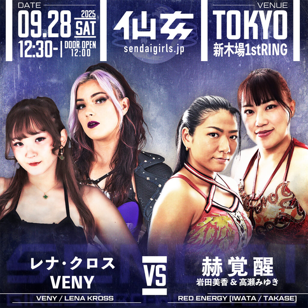【対戦カード】大阪&新木場大会一挙発表!大阪はタッグ王座戦!新木場メインはVENYレナvs赫覚醒!-9.27(土)アゼリア大正ホール大会/9.28(日)新木場1stRING大会