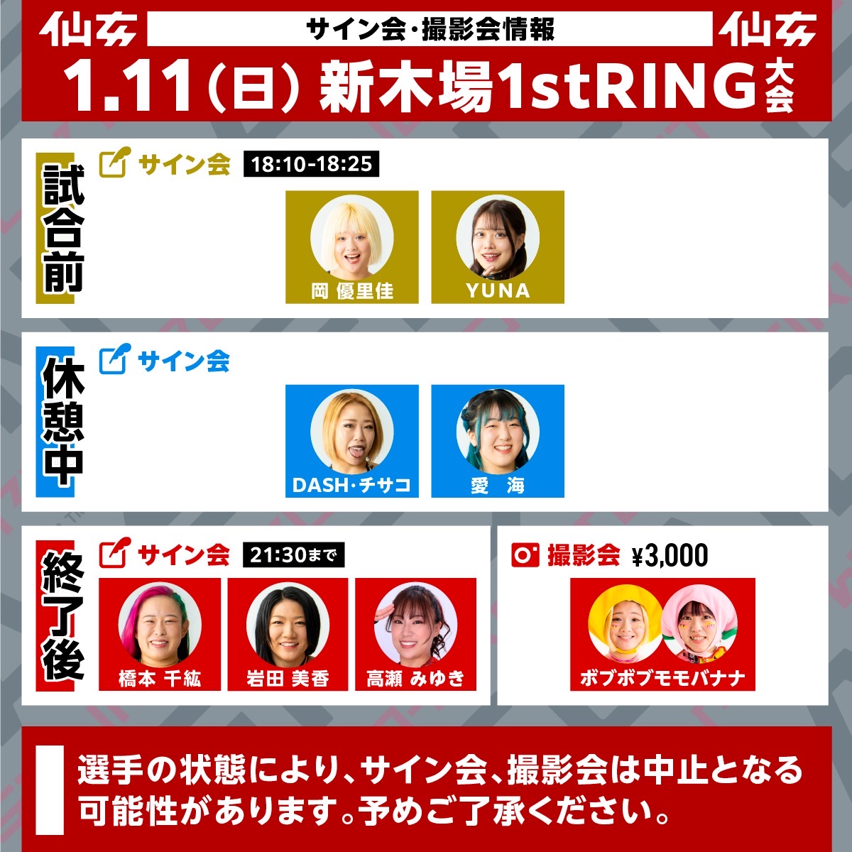 【仙女 当日情報 1.11新木場大会当日情報】