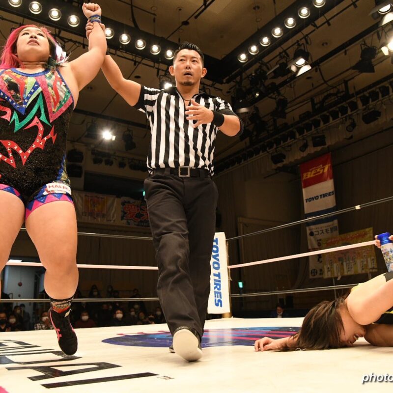 11分 ホルモンスプラッシュ→片エビ固め※DASH・チサコが戦場トーナメント優勝。