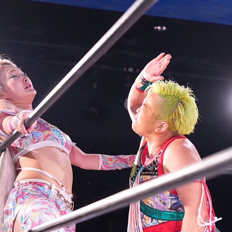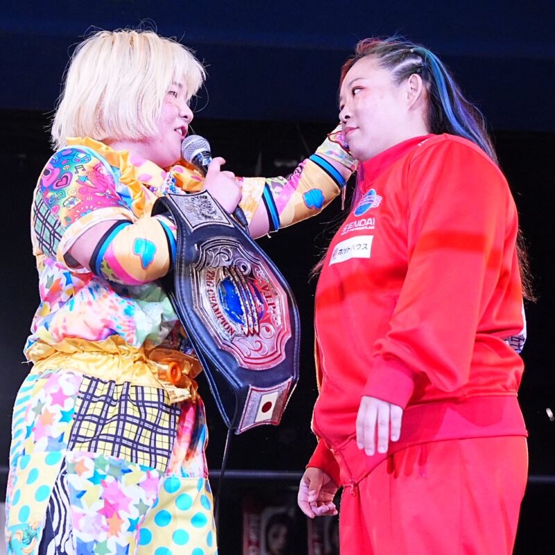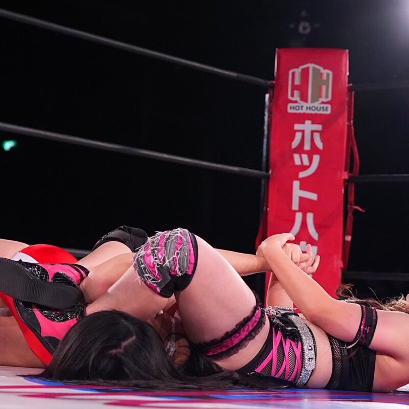 17:50 チサコのホルモンスプラッシュを切り返し→片エビ固め※王者組が初防衛に成功。