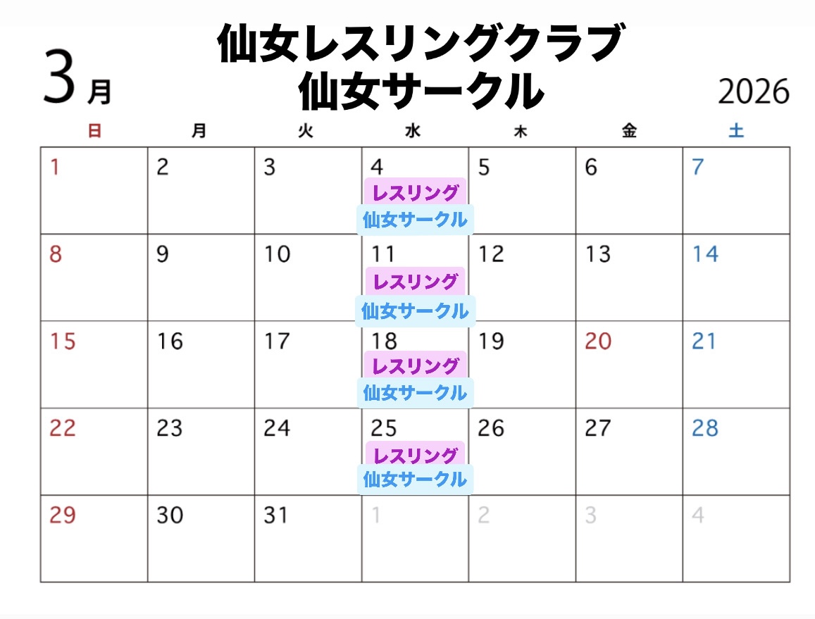 【3月の仙女スポーツレスリングクラブ&仙女サークル日程】